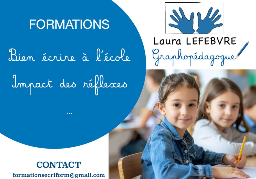 Depuis 2019, je suis également formatrice, je forme les enseignants, les parents, toutes les personnes intéressées par l’enseignement de l’écriture cursive et l’impact des réflexes archaÏques dans les apprentissages.