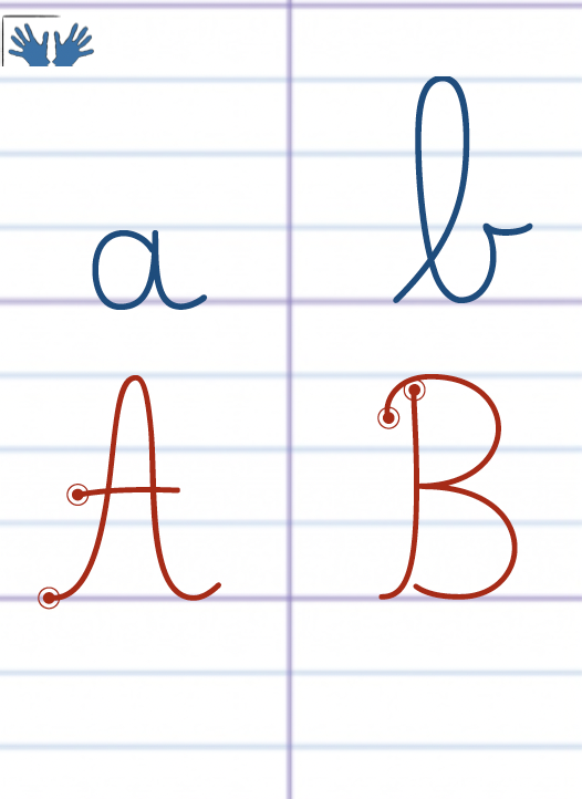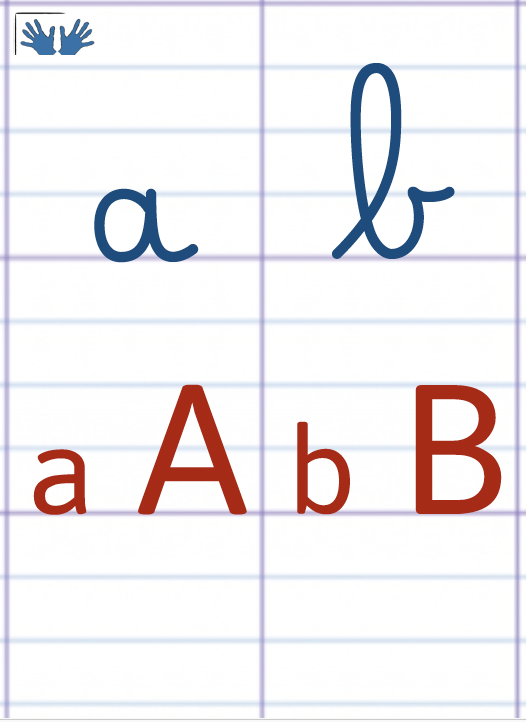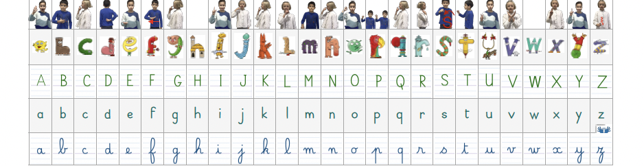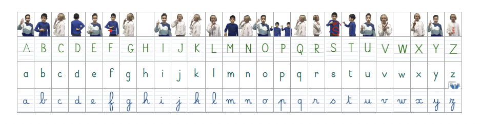 La frise alphabétique en affichage permanent est un outil d’aide à l’écriture et à la lecture. Elle permet aux élèves de s’y référer, vérifier les correspondances entre script/cursif, minuscule/majuscule.