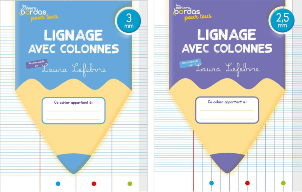 • Dans la continuité de l’utilisation du cahier lignage avec colonnes 3 mm, il permet de faire un pas vers l’usage d’un cahier Seyès classique.