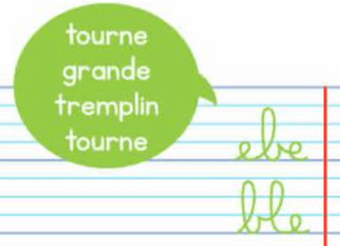 Quand j’ai commencé à enseigner l’écriture, j’ai beaucoup cherché des ressources, n’ayant eu aucune formation à ce sujet. J’ai trouvé plusieurs propositions et notamment celle de décrire le geste: je monte jusqu’à la troisième ligne, je redescends sur le ligne d’écriture….