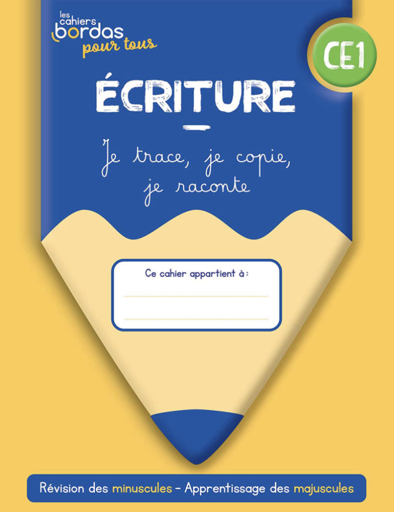 Le cahier CE1 Bordas pour tous: Je trace, je copie, je raconte est un cahier d’apprentissage scolaire de l’écriture cursive qui a pour spécificité d’aborder tous les domaines de l’écriture: geste graphique, copie et production d’écrits. Il s’adresse également aux parents qui souhaitent accompagner leur(s) enfant(s) dans l’apprentissage de l’écriture cursive en remédiation.