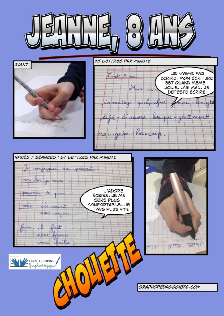 La graphopédagogie remédie aux problèmes d’écriture. On peut démarrer dès que les difficultés apparaissent, à partir de 5 ans. Les séances concernent aussi les collégiens, lycéens, étudiants et adultes.